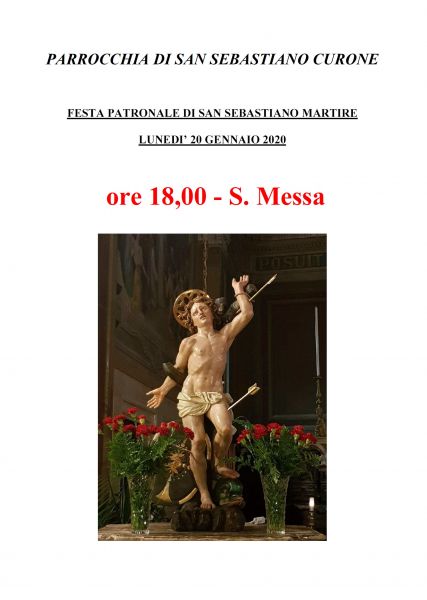 Per la ricorrenza del patrono del Comune, lunedì 20 Gennaio la S. Messa si terrà alle ore 18:00 nella parrocchia di San Sebastiano.
