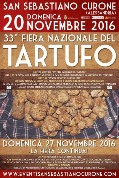 La Fiera Nazionale del Tartufo Bianco e Nero di San Sebastiano Curone si terrà quest'anno nelle domeniche 20 e 27 novembre.
