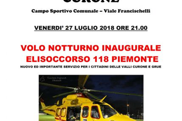 SAN SEBASTIANO CURONE - Venerdì 27 Luglio 2018 ore 21.00 presso Campo Sportivo Comunale VOLO NOTTURNO INAUGURALE ELISOCCORSO 118 PIEMONTE!!!