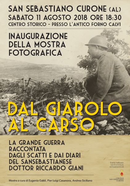 Con l'inaugurazione di sabato 11 Agosto p.v. alle ore 18.30 si apre presso l'Antico Forno Calvi la Mostra Fotografica "Dal Giarolo al Carso" la Grande Guerra raccontata dagli scatti e dai diari del sansebastianese Dott. Riccardo Giani.