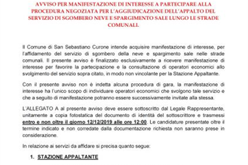 MANIFESTAZIONE DI INTERESSE A PARTECIPARE ALLA PROCEDURA NEGOZIATA PER L'AGGIUDICAZIONE DELL'APPALTO DI SGOMBERO NEVE E SPARGIMENTO DI SALE