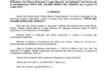 ORDINANZA DI CHIUSURA VIE E PIAZZE IN OCCASIONE DELLA FESTA DEL SALAME NOBILE DEL GIAROLO