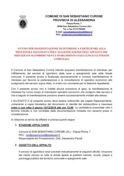 MANIFESTAZIONE DI INTERESSE A PARTECIPARE ALLA PROCEDURA NEGOZIATA PER L'AGGIUDICAZIONE DELL'APPALTO DEL SERVIZIO SGOMBERO NEVE E SPARGIMENTO DI SALE LUNGO LE STRADE COMUNALI