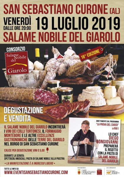 Venerdi' 19 Luglio 2019 a partire dalle ore 19.00 nel borgo di San Sebastiano Curone si svolgerà la festa del Salame Nobile del Giarolo.