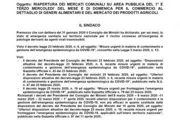ORDINANZA N. 411 RIAPERTURA MERCATI GENERI ALIMENTARI