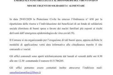 EMERGENZA SANITARIA LEGATA AL DIFFONDERSI DEL VIRUS COVID-19 MISURE URGENTI DI SOLIDARIETA’ ALIMENTARE