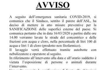 INTERVENTO DI DISINFEZIONE E SANIFICAZIONE MARTEDI' 14/04/2020
