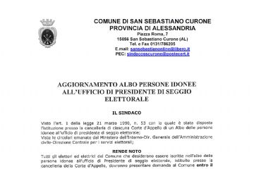 AGGIORNAMENTO ALBO PERSONE IDONEE ALL'UFFICIO PRESIDENTE DI SEGGIO ELETTORALE E ALBO UNICO DEGLI SCRUTATORI DEI SEGGI ELETTORALI.