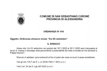 ORDINANZA SINDACALE N. 416 DEL 16/11/2020