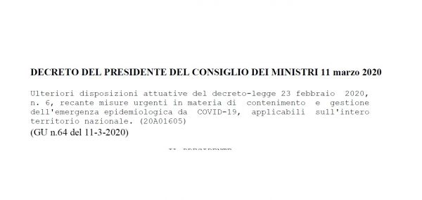 CORONAVIRUS NUOVO DPCM 11/03/2020