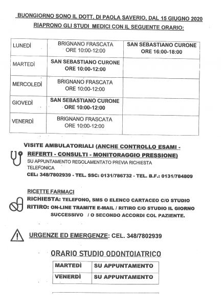 Ecco gli orari e le modalità di acesso allo studio medico Di Paola.