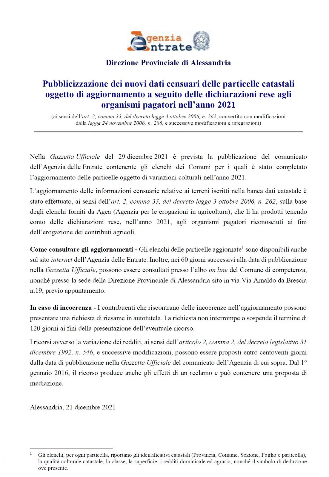 Attività di pubblicizzazione degli elenchi di particelle oggetto di variazioni colturali, ai sensi dell’art. 2, comma 33, del decreto-legge 3 ottobre 2006, n. 262, convertito, con modificazioni, dalla legge 24 novembre 2006, n. 286, e successive modificazioni e integrazioni.