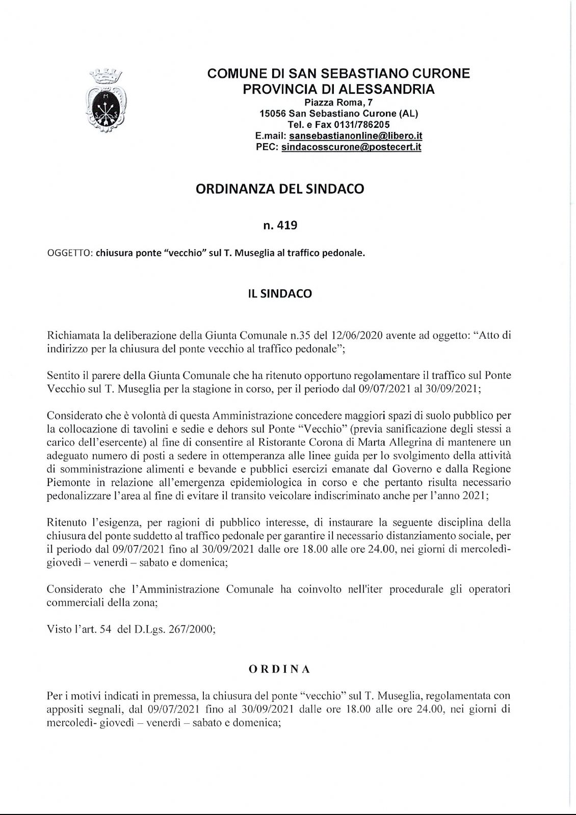 - ORDINANZA SINDACALE 419 DEL 9/7/2021[.pdf 1018,04 Kb - 14/07/2021]