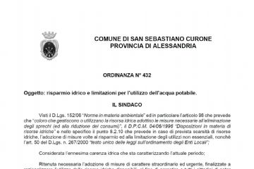 ORDINANAZA LIMITAZIONE UTILIZZO ACQUA POTABILE