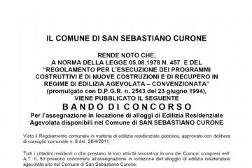 Bando di concorso per l'assegnazione in locazione di alloggi di Edilizia Residenziale Agevolata disponibili nel Comune di SAN SEBASTIANO C.