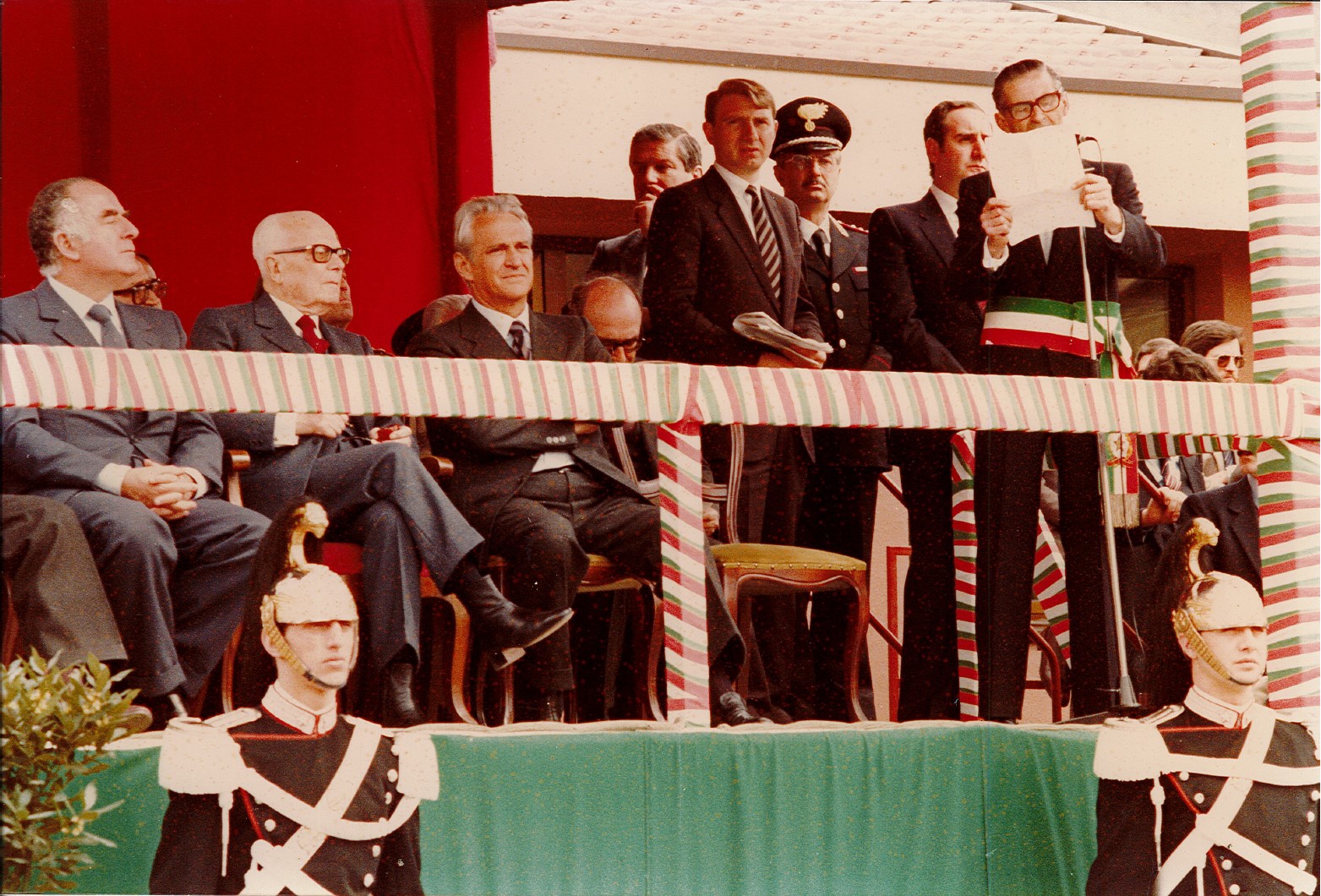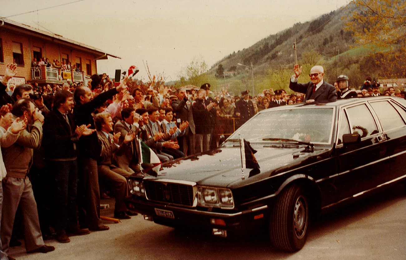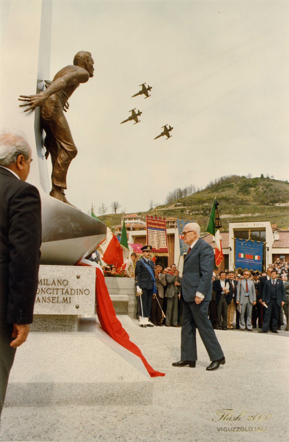 17 APRILE 1983 - IL PRESIDENTE DELLA REPUBBLICA SANDRO PERTINI INAUGURA L'EDIFICIO SCOLASTICO E IL MONUMENTO AL COMANDANTE PARTIGIANO MARCO FRANCO ANSELMI.