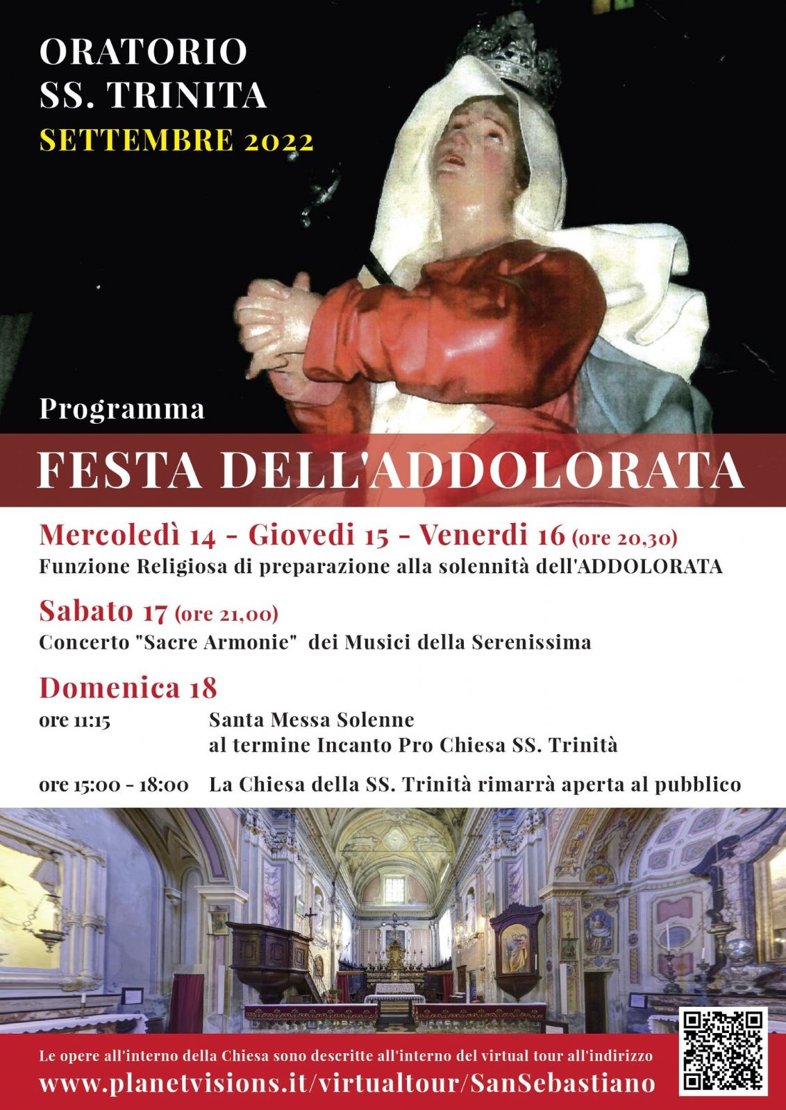 Ecco l'orario delle funzioni in occasione della Solennità dell'Addolorata.