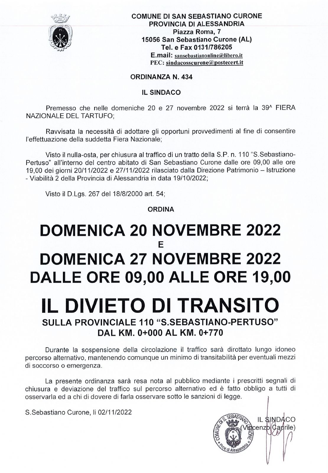 ordinanza chiusura strada sp 110