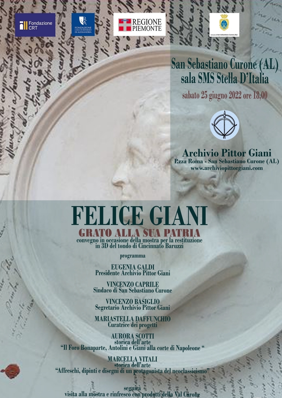 SAN SEBASTIANO CURONE SALA SMS STELLA D'ITALIA 25 GIUGNO 2022 ORE 18.00 - ARCHIVIO PITTOR FELICE GIANI - FELICE GIANI GRATO ALLA SUA PATRIA - CONVEGNO IN OCCASIONE DELLA MOSTRA PER LA RESTITUZIONE IN 3D DEL TONDO DI CINCINNATO BARUZZI.