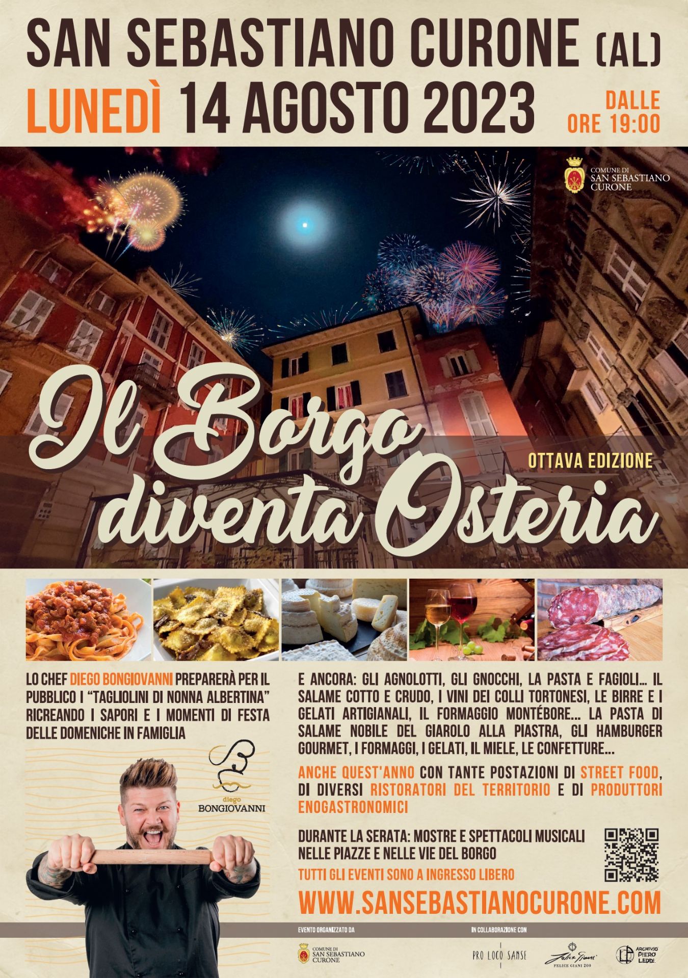Lunediì 14 agosto 2023 per le vie di San Sebastiano Curone tanti piatti e prodotti da gustare con musica, mostre e artisti di strada.