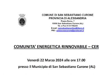 COMUNITA’ ENERGETICA RINNOVABILE – CER - San Sebastiano Curone 22/03/2024 ore 17.00 c/o Municipio