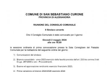 Convocazione del Consiglio Comunale del 02/05/2024 ORE 19.00