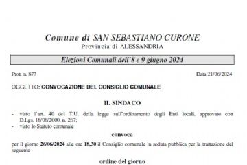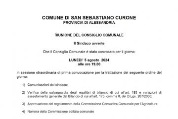 Convocazione del Consiglio Comunale del 05/08/2024 ore 19.00