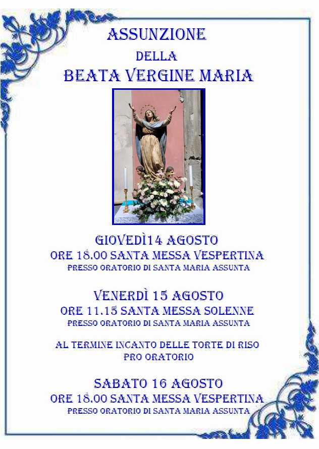 Ecco le funzioni in occasione della Festa dell'Assunta presso l'omonimo Oratorio in Piazza Solferino
