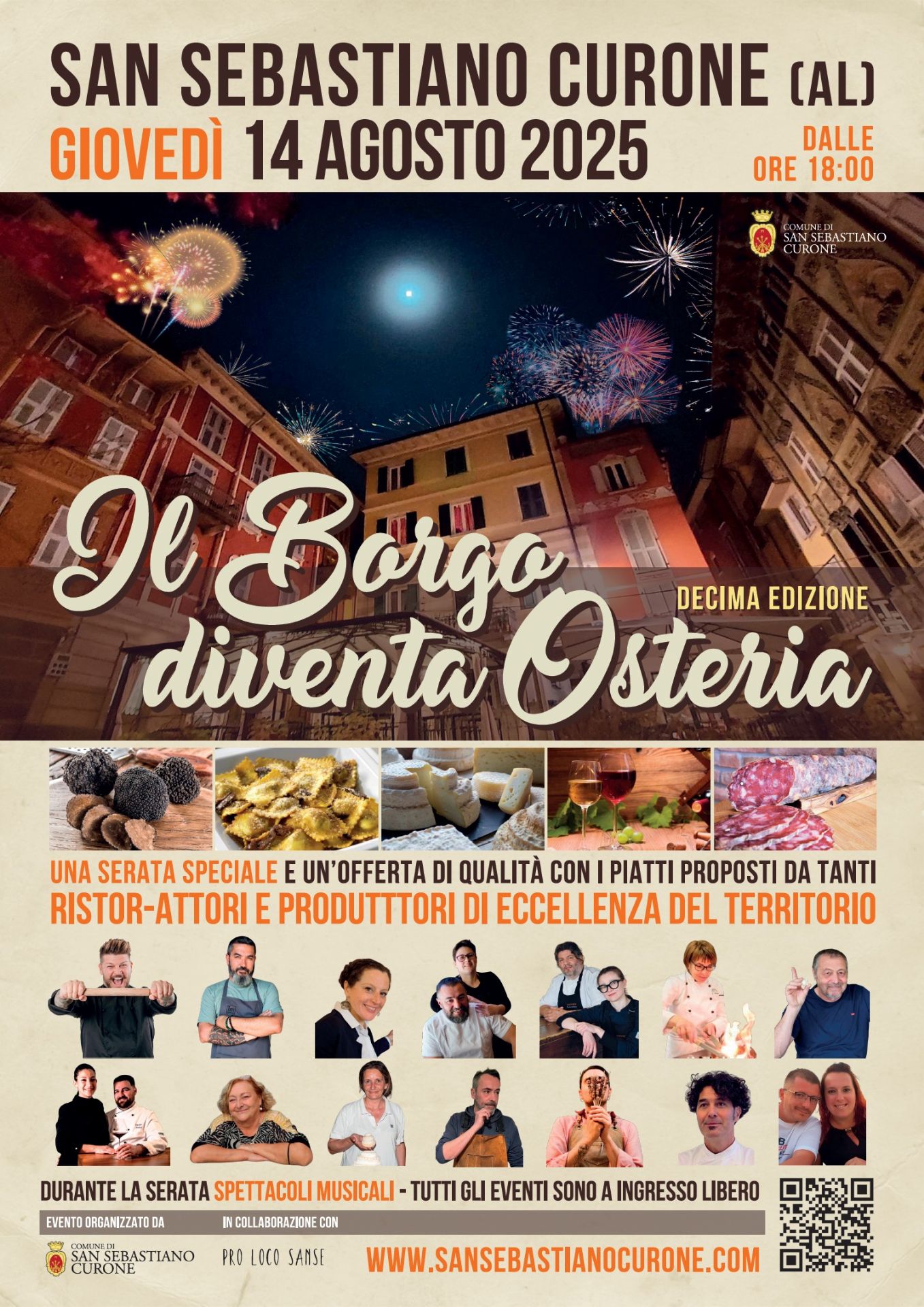 “Il Borgo diventa Osteria” è una manifestazione nata nel 2013 che si tiene la sera del 14 agosto, diventata, sin dalla sua prima edizione, un punto di riferimento per tutti gli amanti del buon cibo e dello “stare insieme”.