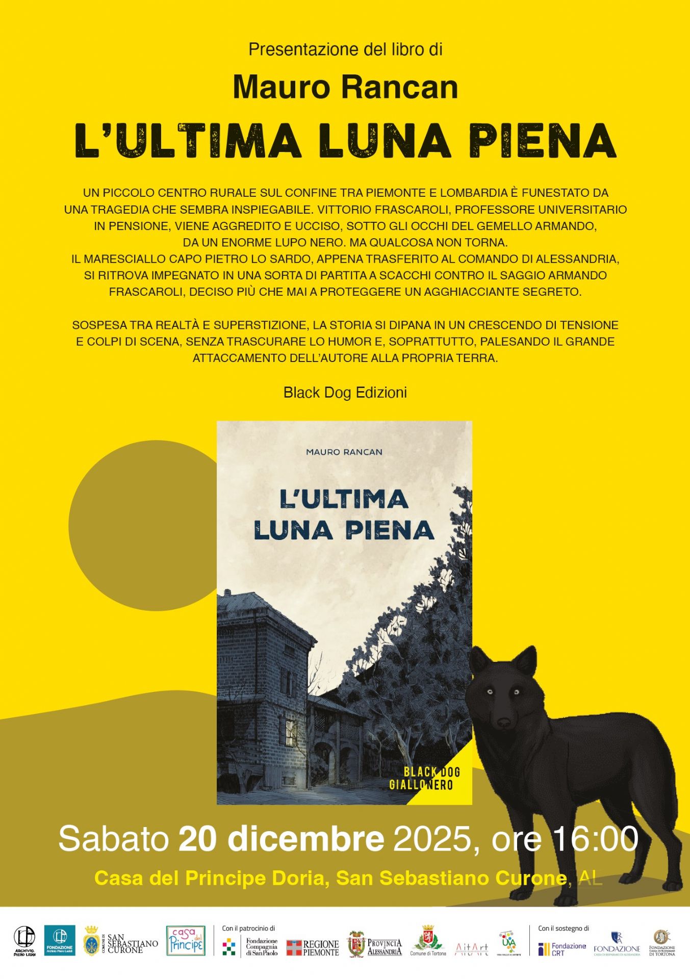 Sabato 20 dicembre 2025 dalle ore 16.00 San Sebastiano Curone presso la Casa del Principe in Piazza Solferino presentazione del libro di Mauro Rancan "L'ultima Luna Piena".