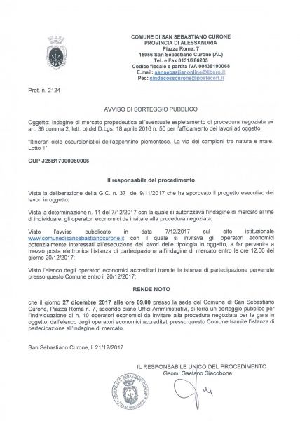 Il comune di San Sebastiano Curone appartiene a: Regione Piemonte (Apre il link in una nuova scheda) - Provincia di Alessandria (Apre il link in una nuova scheda)