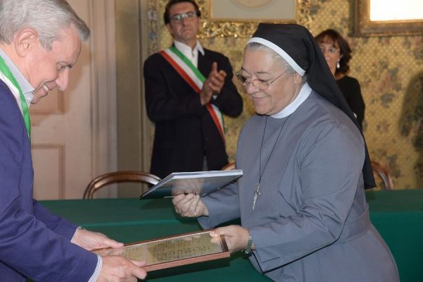 Ieri presso la Sala Consiliare del Comune di San Sebastiano Curone è stata conferita la cittadinanza onoraria sansebastianese alla superiora generale del Piccole Suore MIssionarie della Carità M.Mabel Spagnuolo e al Sig. Pierangelo Bergaglio.