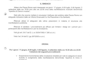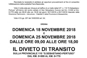 ORDINANZA SINDACALE N° 376-18 MANIFESTAZIONE AUTOMOBILISTICA 5 RALLY RACE TERRE DEL TIMORASSO