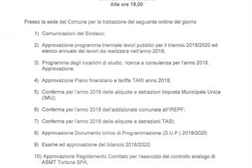 CONVOCAZIONE CONSIGLIO IN SEDUTA ORDINARIA - GIOVEDI' 8 MARZO 2018 ORE 18.00