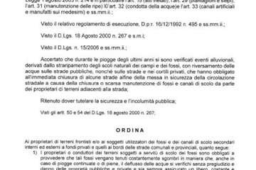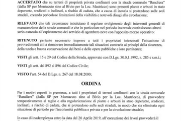 ORDINANZA N° 390 - TAGLIO E REGOLARIZZAZIONE PIANTE STRADA "BANDIERA"