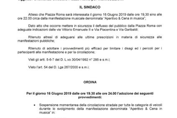 CHIUSURA PIAZZA ROMA PER MANIFESTAZIONI IL 16-06-2019