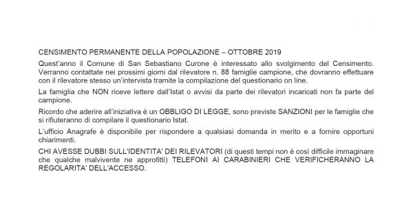 QUEST'ANNO IL COMUNE DI SAN SEBASTIANO CURONE E' INTERESSATO ALLO SVOLGIMENTO DEL CENSIMENTO.