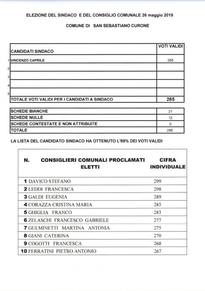 ELEZIONE DEL SINDACO E DEL CONSIGLIO COMUNALE 26 MAGGIO 2019