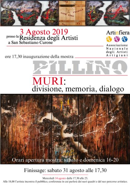 INAUGURAZIONE DELLA MOSTRA PILLINO - SAN SEBASTIANO CURONE SABATO 3 AGOSTO 2019 ORE 17.30 PRESSO LA RESIDENZA DEGLI ARTISTI IN PIAZZA STATUTO