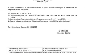CONVOCAZIONE DEL CONSIGLIO COMUNALE