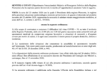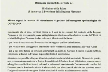 ORDINANZA MINISTRO DELLA SALUTE - PRESIDENTE DELLA REGIONE PIEMONTE