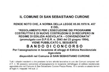 BANDO DI CONCORSO PER L'ASSEGNAZIONE IN LOCAZIONE DI ALLOGGI DI EDILIZIA RESIDENZIALE AGEVOLATA DISPONIBILI NEL COMUNE DI SAN SEBASTIANO CURONE