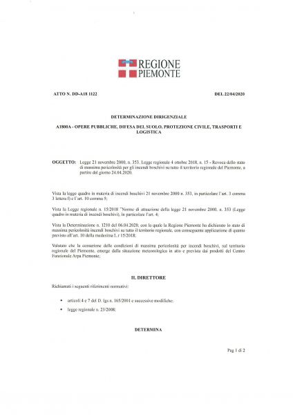 SI ALLEGA D.D. -A18 1122 della Regione Piemonte.