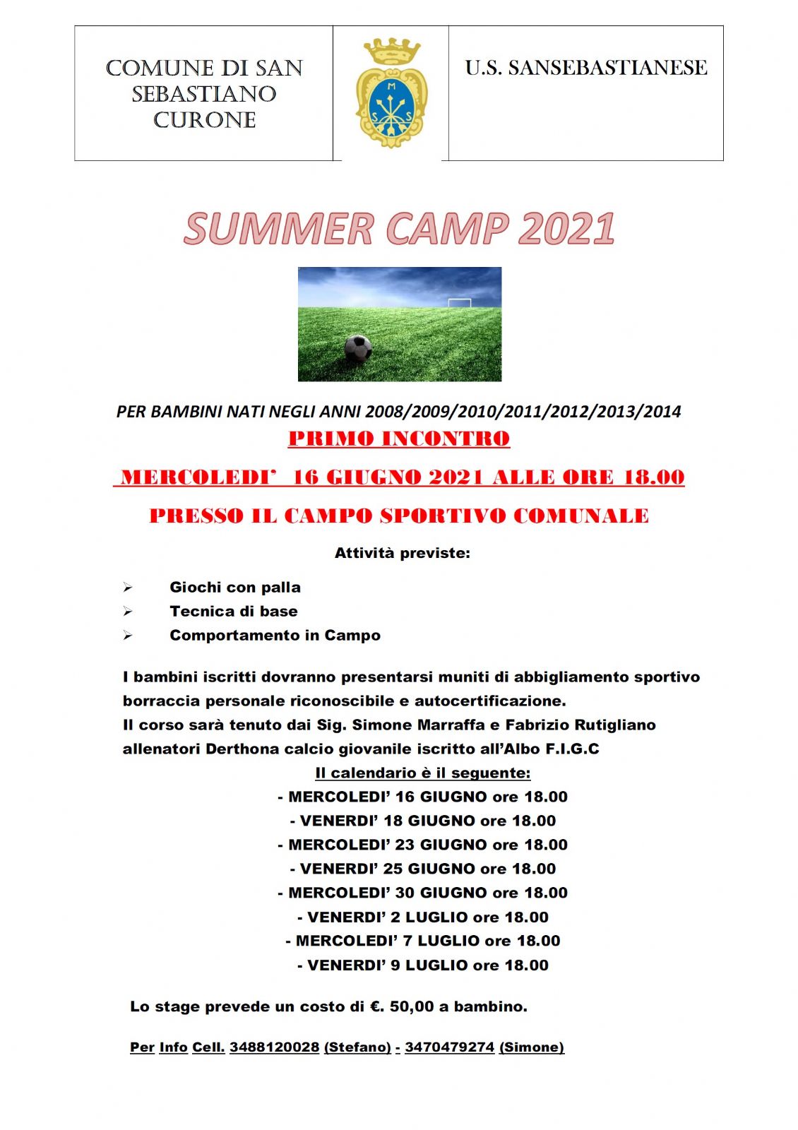 Per problemi tecnici il primo incontro dei Summer Camp 2021 è POSTICIPATO a mercoledi' 16 giugno con conseguente slittamento delle altre date del programma. Vi aspettiamo!!!