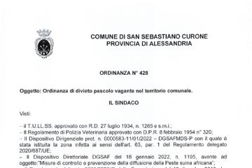 Ordinanza Sindacale n° 428 del 01/02/2022 "DIVIETO DI PASCOLO VAGANTE SUL TERRITORIO COMUNALE"