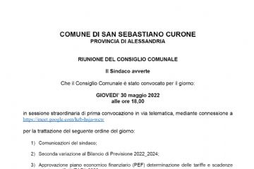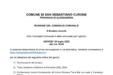 CONVOCAZIONE CONSIGLIO COMUNALE - 28 LUGLIO 2022 ALLE ORE 18.00