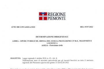 STATO DI MASSIMA PERICOLOSITA' PER INCENDI BOSCHIVI A PARTIRE DAL 21/07/2022.