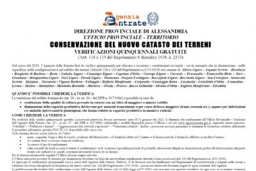 CONSERVAZIONE DEL NUOVO CATASTO TERRENI VERIFICAZIONI QUINQUENNALI GRATUITE - ARTT. 118 E 119 DEL REGOLAMENTO DI CONSERVAZIONE 8.12.1938, N. 2153.