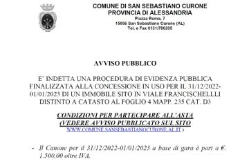 AVVISO PUBBLICO PER LA CONCESSIONE IN USO PER IL 31/12/2022-01/01/2023 DI UN IMMOBILE SITO IN VIALE FRANCISCHELLI