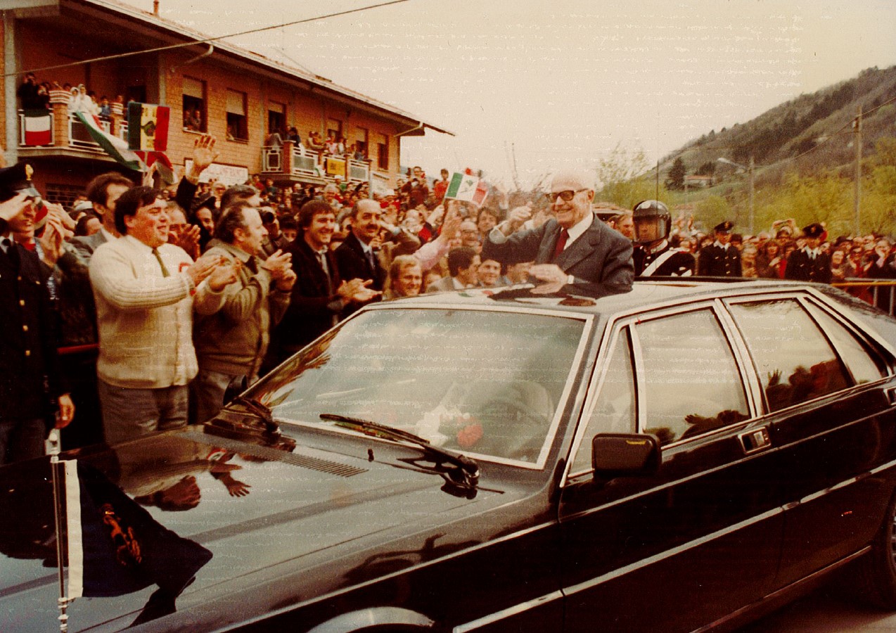 17 APRILE 1983 - IL PRESIDENTE DELLA REPUBBLICA SANDRO PERTINI INAUGURA L'EDIFICIO SCOLASTICO E IL MONUMENTO AL COMANDANTE PARTIGIANO MARCO FRANCO ANSELMI.